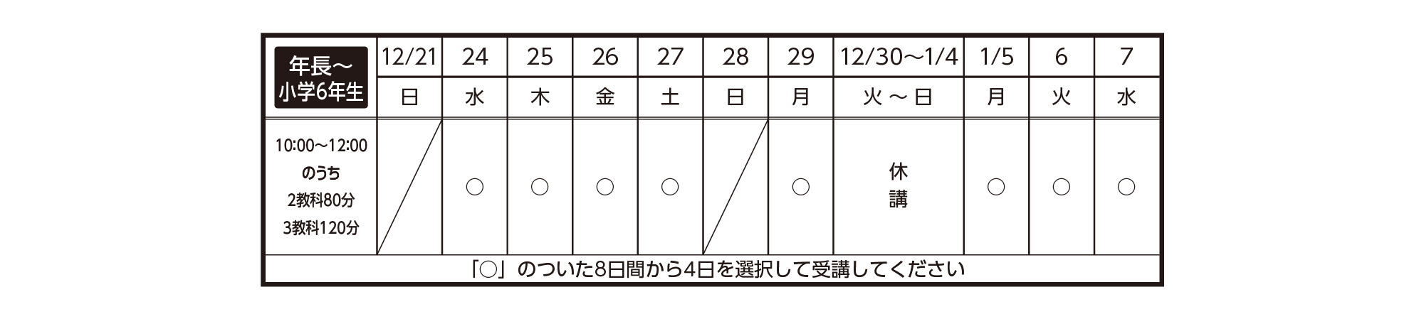 9:00〜16:10朝課題 + 授業(お昼ご飯をご持参してください) 18:00〜21:50希望者自習